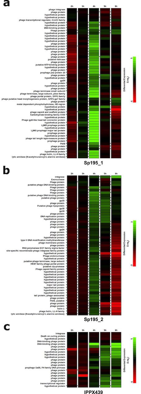 Each one of the students made a significant contribution to that study and as such it is one of the papers I am most proud of having published2. We revealed that prophage DNA was ubiquitous among pneumococcal genomes and identified nearly 300 different prophages, over 160 of which had not yet been reported. We also demonstrated that prophage genes were expressed under experimental conditions, suggesting they might well have an important function among pneumococci (Figure 1). Most importantly, there was indisputable evidence for an epidemiological association between specific prophages and pneumococcal genetic lineages. This is important because it allows us to further investigate why that might be the case, and whether or not prophages contribute to the pathogenicity of a particular lineage.