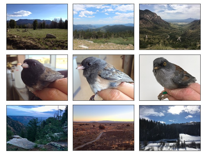 A handful of the field sites and Junco taxa used in this study. (Photos by Maria Stager)
