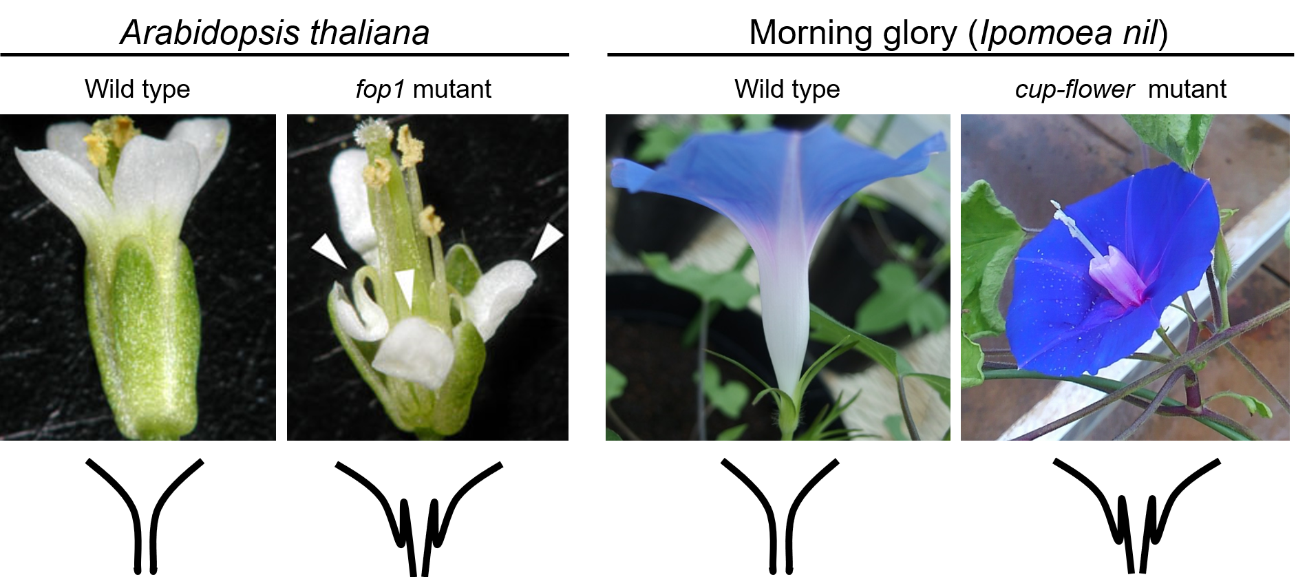 After finished my PhD and post-doc life, I started the FOLED PETALS project again. There were three fop mutants in Arabidopsis thaliana, and I found that FOP1 and FOP2 encoded wax synthase and ABC transporter, respectively, suggesting that wax synthesis and transport in petal epidermis were required for petal elongation in Arabidopsis thaliana (Takeda et al., 2013, 2014). But I could not fully understand the mechanism for corolla folding in the cup flower mutants in the morning glory.