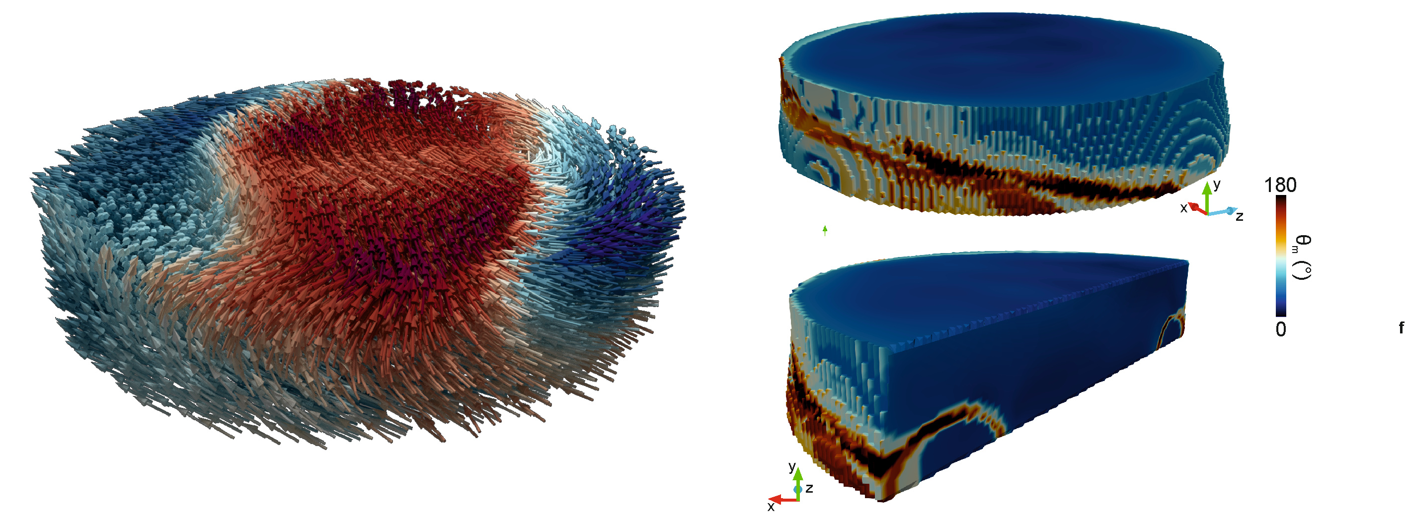 When one thinks of a magnet, we often imagine a red and blue bar magnet, designed to produce strong magnetic fields. Such magnets are widely used in and for our daily lives, from magnetic boards in the kitchen, to electricity production. But it’s not only strong, permanent magnets that are useful: highly inductive materials whose magnetic state changes significantly when exposed to external fields are used as sensors, whilst patterned nanomagnets and thin films are used for data storage, and have been proposed for future forms of computer memories and logic devices. Indeed, recently there is growing interest in moving such systems to three-dimensions, with first theoretical works predicting extremely fast motion of magnetic features, as well as chiral effects.