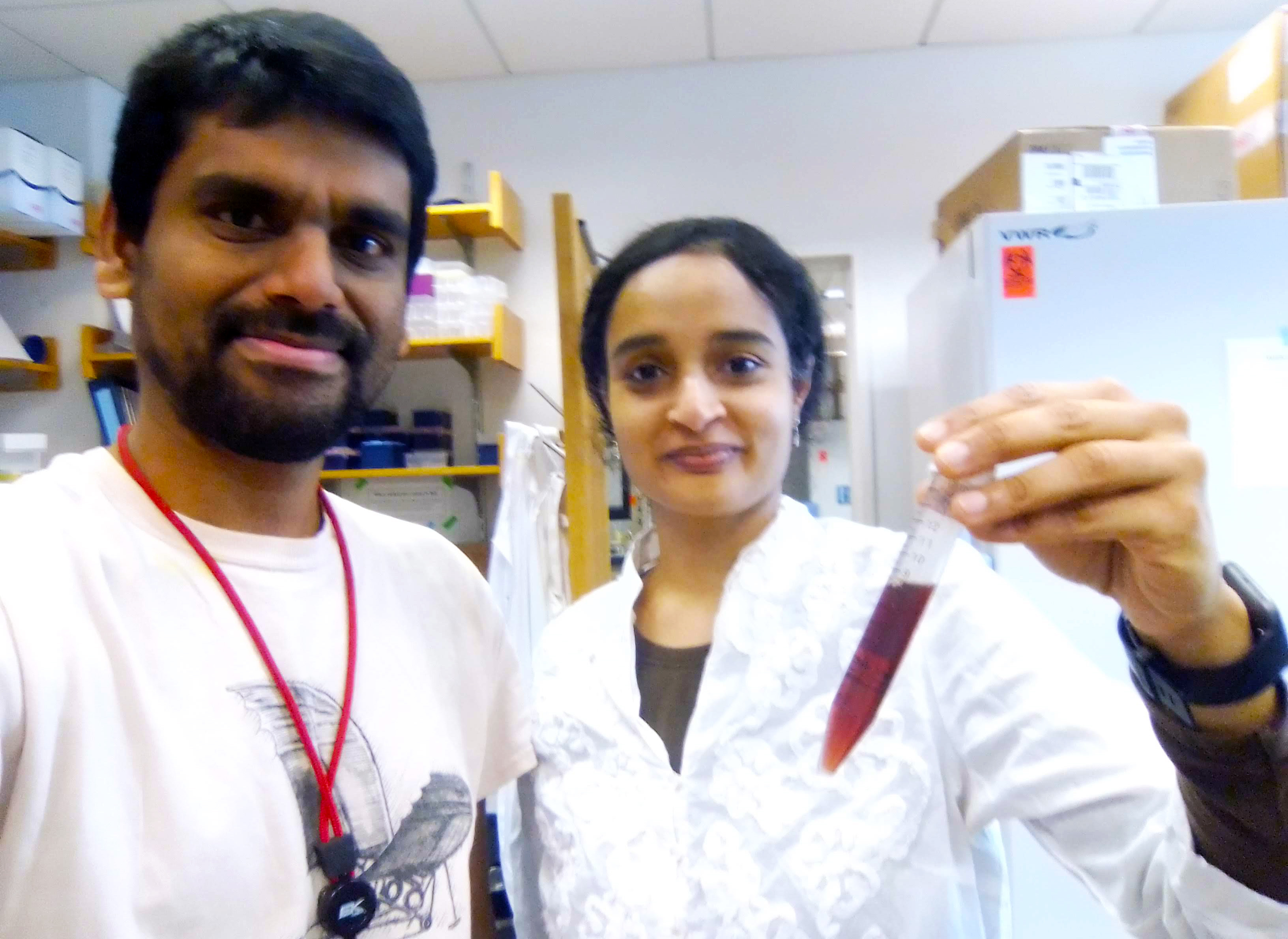 Right eyes at the right time: Serendipitously, when working on a completely different aspect of the project I noticed something that solved the peptide iron puzzle and changed the course of my postdoc research. When we overexpressed MBP-tagged NCR247 in E. coli, the protein purified in a reddish-brown color. The presence of reddish color in a protein most likely means there is an iron or iron cofactor associated with it. Through multiple bioanalytical and biochemical assays, I confirmed the presence of an important iron-containing cofactor “heme” in the purified protein. And thus began my adventure in post-doc.
