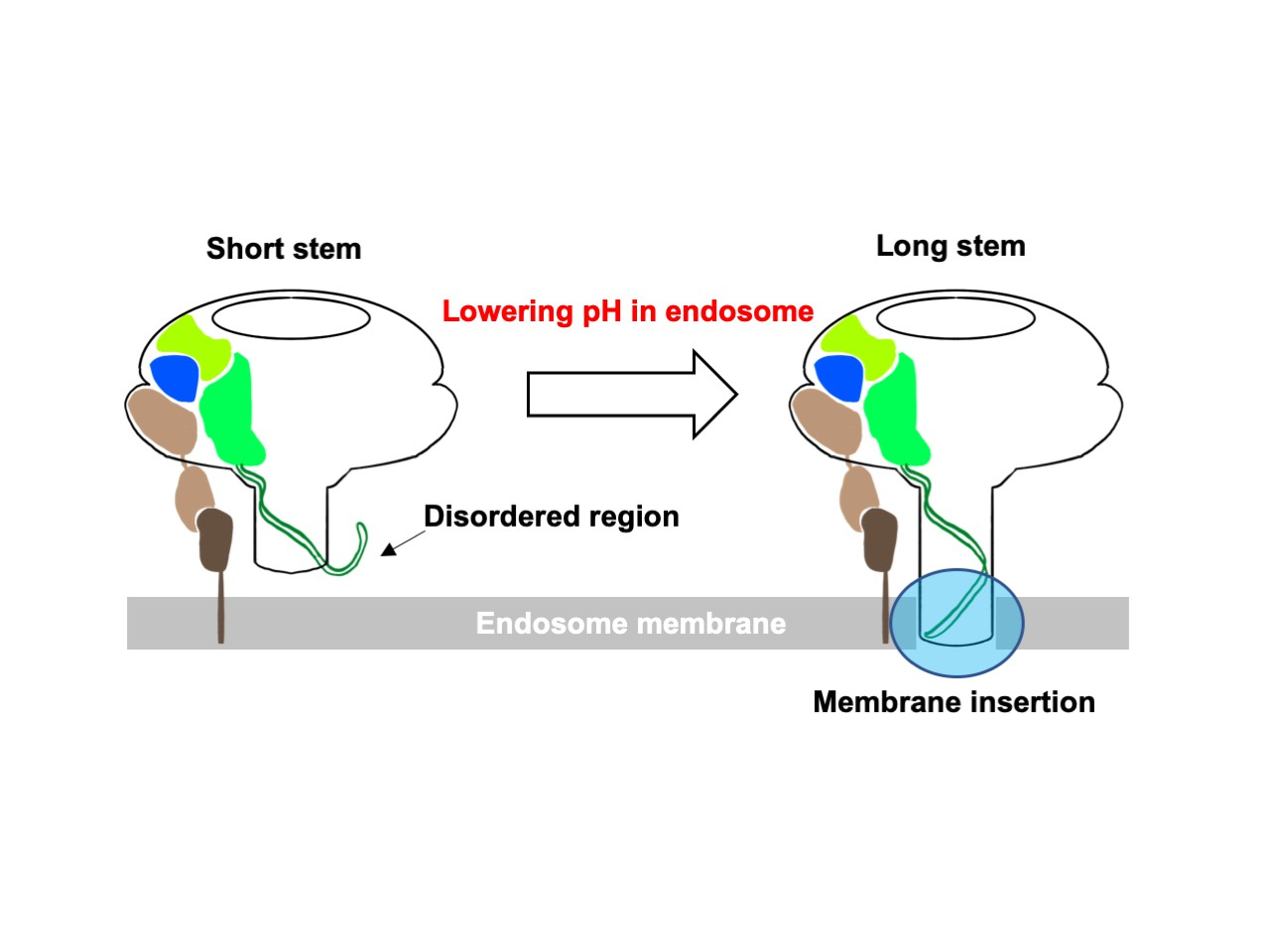 It is also noteworthy that two structures of the Ia-bound Ib-pores with short and long stems were obtained by cryo-EM 3D classification. The transmembrane region is disordered in the short stem structure. We hypothesize that Ib-pores with short stems are soluble and metastable intermediate states between the prepores and pores. The disordered region likely forms the intact beta-barrel (the long stem) from the short stem pore for membrane insertion, which may be general in the beta-pore-forming toxin. Recently, two groups reported that CDTb-pores form double heptamers, which is likely to be a non-physiological form, but they also include short stem pores with a disordered stem region1,2.