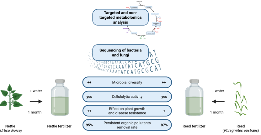 Polluted plants from constructed wetlands are considered unsubale waste. The authors present a cost-effective, sustainable, scalable, nature-based method that eliminates micropollutants and transforms this waste into phytoprotective and biostimulant liquid fertilizers for agriculture.
