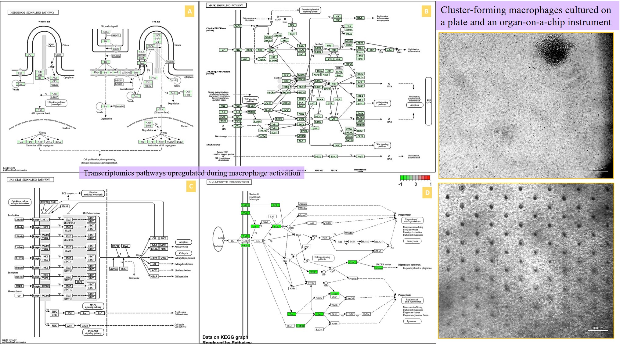Our first-in-study experiments facilitated the differentiation of motile, and miniature macrophages for growth on a kidney-on-a-chip (generic model) instrument, where we cultured M1 macrophages on the top channel of the instrument, and the M2 macrophages in the bottom channel under adequate culture conditions, to enable the regulation of professional phagosomes in a microenvironment (Figure 1). In this way, we established and verified a preliminary platform of macrophages cultured on a kidney-on-a-chip instrument, to facilitate the following studies for their projected completion [Jeewandara 2023] -