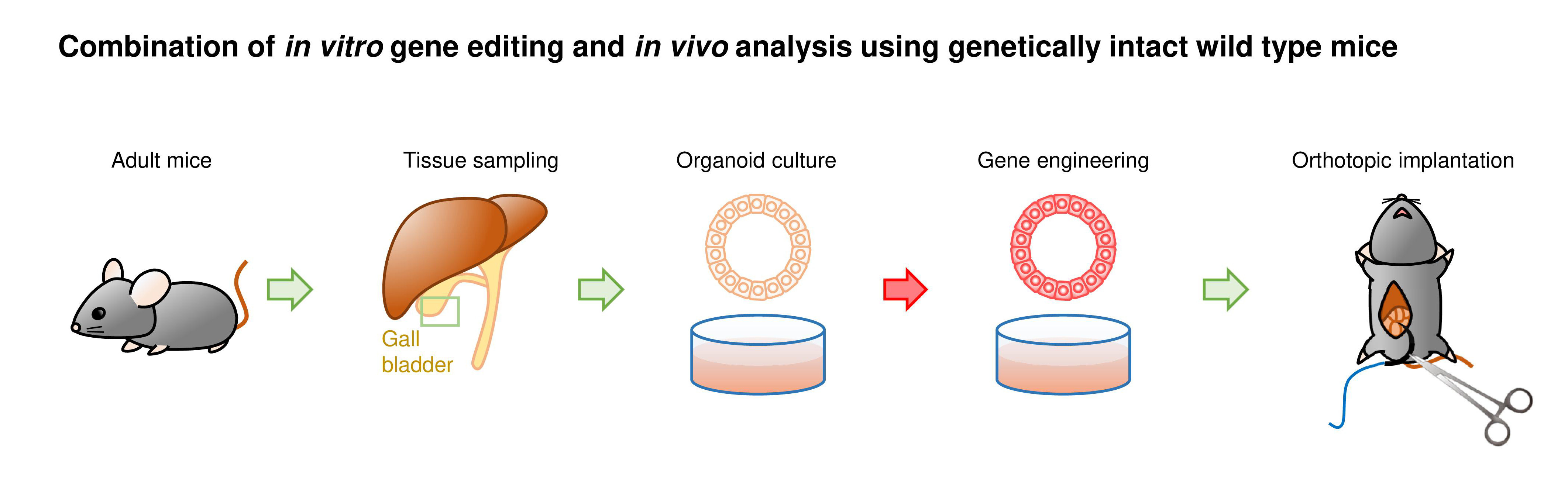 We developed a new mouse model that can mimic not only cancer development but other biological characteristics of cancer patients as well. Given the poor prognosis and availability of few models due to the lack of gall bladder (GB)-specific Cre mouse strain, we selected the GB as a target organ for the proof-of-concept study.