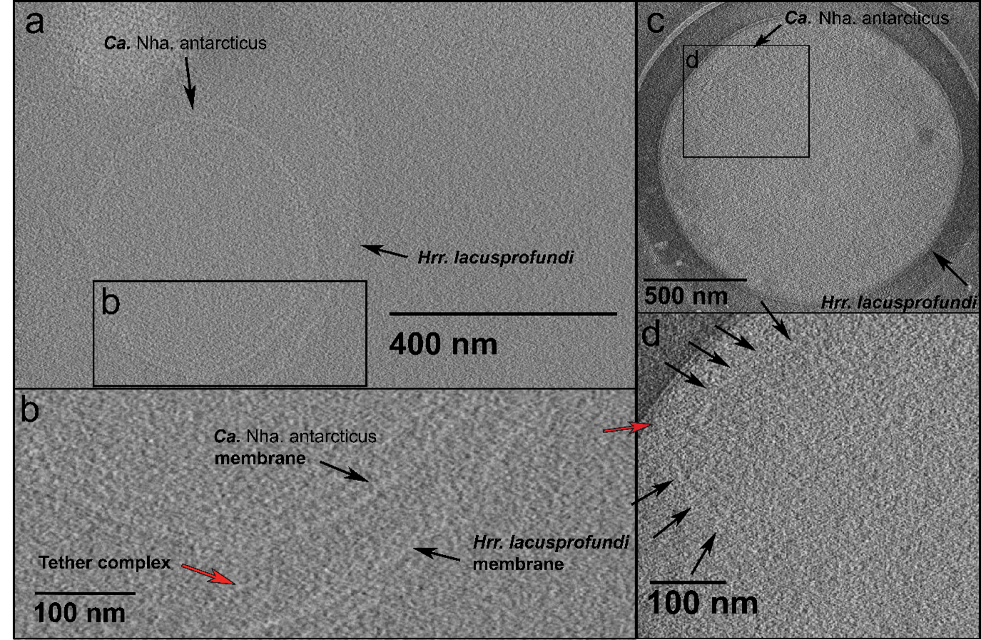 The data Yan generated represented the first reproducible evidence that the interactions between Ca. Nha. antarcticus and Hrr. lacusprofundi lead to host lysis and some morphological changes of host cells. However, the question remained whether the nanohaloarchaeon was truly entering the host cell or just making an invagination in the host membrane. To address this, we needed techniques capable of resolving individual membranes in 3-dimensional reconstructions, such as ultra-thin sectioning or cryo-tomography.