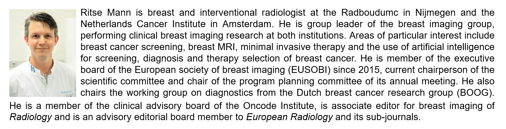“This is important as there is a large variability in histopathological assessment of breast lesions and even in simple tasks as receptor status assessment,” Ritse said. “Moreover, in many parts of the world receptor evaluation is not always performed due to costs. This algorithm enables virtually free determination of subtypes and may aid therapy selection even in places where pathologic evaluation is suboptimal.”