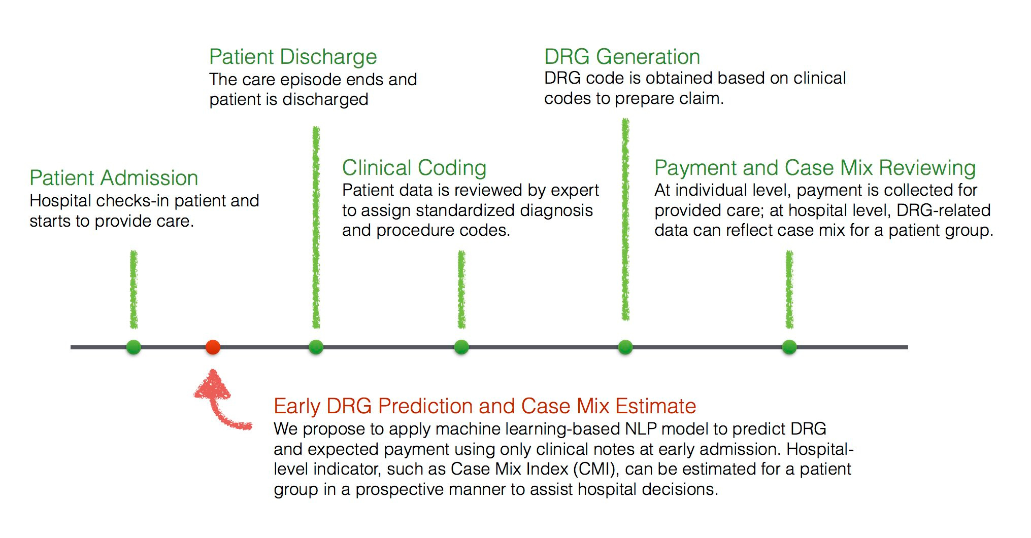 We applied a deep learning-based natural language processing (NLP) model on the clinical notes written by healthcare providers to classify a patient into an anticipated DRG code.