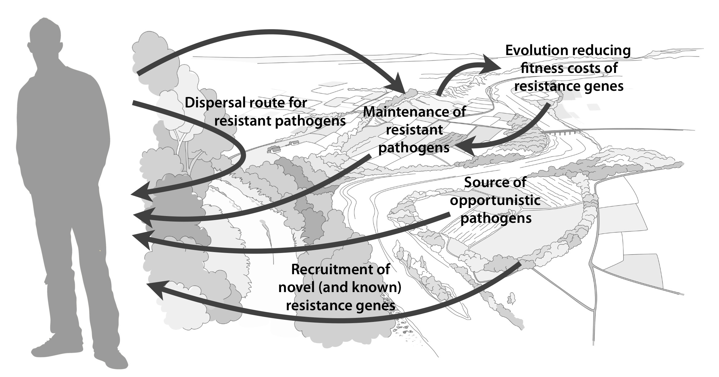 In addition, the natural environment is important in the development of resistance in pathogens in two ways. First, it can act as a means for resistant bacteria to be transmitted between persons – for example through sewage treatment plants, into surface waters used for drinking or irrigation, and back to humans. Second, the vast diversity of environmental bacteria has been shown to host an enormous variety of antibiotic resistance genes. Under the right conditions, these genes can make the jump from harmless environmental bacteria into human pathogens, potentially having a devastating impact on our ability treat infectious diseases.