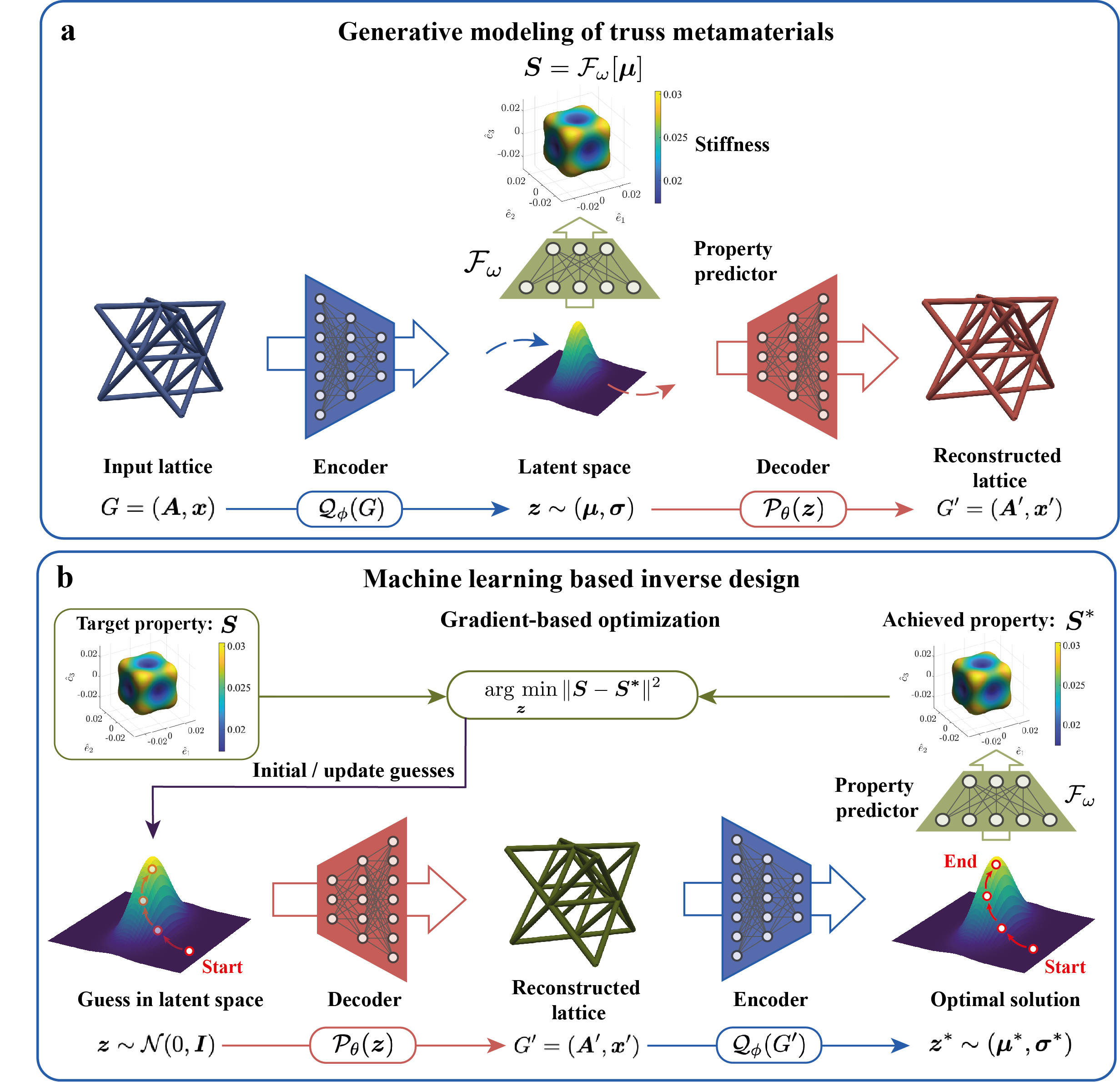 In summary, we have constructed a unified and continuous latent space that transcends the limitations of conventional design methodologies. The integration of gradient-based optimization offers a comprehensive solution to the complex challenge of truss metamaterial design. The generative modeling framework, which provides interpretability, versatility, and extrapolation capabilities, not only pushes the boundaries of what is achievable but also paves the way to uncover a broad range of novel materials and structures, opening new horizons for the field of metamaterial design.
