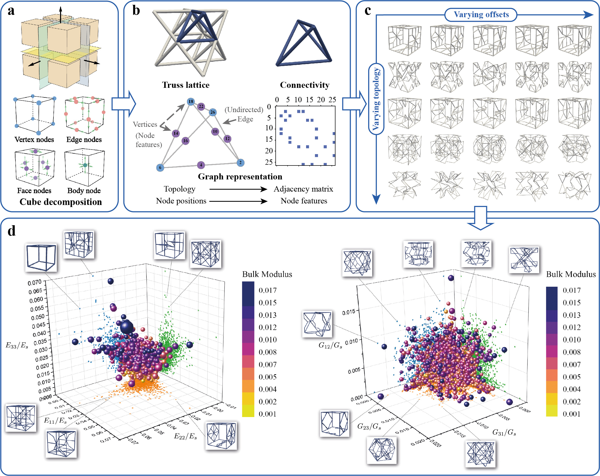 In the intricate realm of truss metamaterial design, the challenge lies in navigating a discrete and discontinuous design space. Truss lattices, each unique with varying node numbers and degrees of freedom, pose a formidable complexity.
