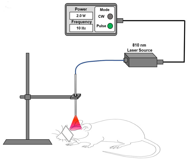 Rat receiving either continuous wave or pulsed laser treatment