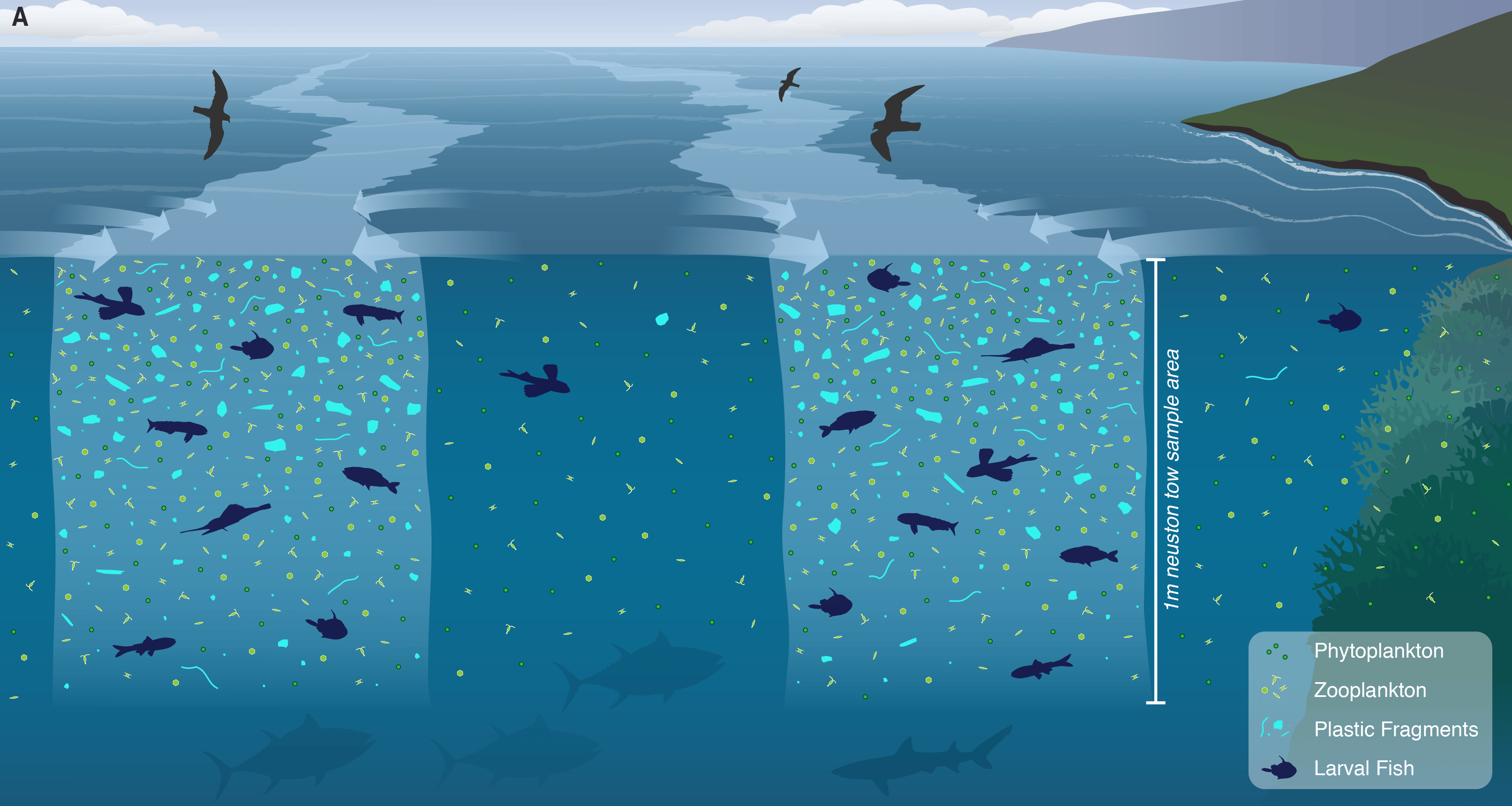 Unfortunately, our team also discovered that the same ocean processes that aggregate prey for larval fish also concentrated tiny, passively floating plastics. We found that plastics were 126 times more concentrated in surface slicks than neighboring surface waters and outnumbered larval fish 7:1 in their preferred nursery habitat.