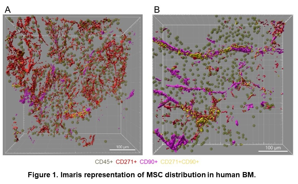 Despite a detailed characterization of the murine BM environment, the human BM niche remains poorly investigated. Whereas all bones support hematopoiesis in mice, the axial skeleton is the major hematopoietic site in humans. The hematopoietic (red) marrow of long human bones is progressively replaced in adolescence by adipocytes, which reduces the hematopoietic activity of BM, except for the proximal regions of the long bones. Therefore, it is still being determined if all HSC niche components in mouse BM are also relevant for the human BM niche. Most studies of human stromal BM cells have been performed after ex-vivo expansion; however, this strategy poorly reflects the in vivo cell interaction.