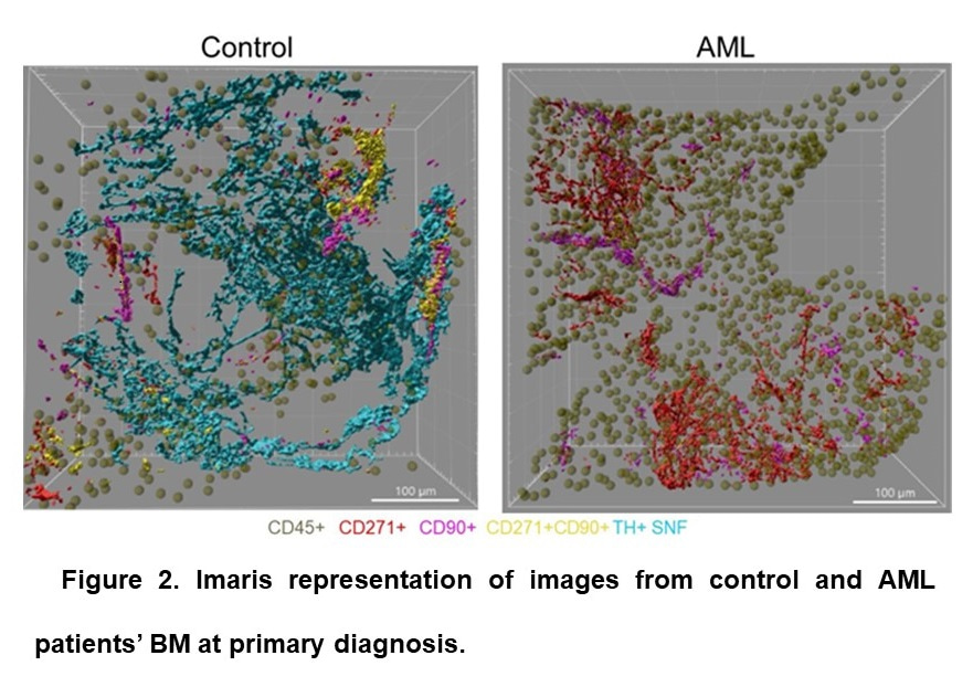 The loss of information about human 3D architecture is explained by the difficulty of obtaining BM biopsies, as many clinics have shifted from performing trephine biopsies for diagnosis to primarily using BM aspirates. This lack of important information about the intact human BM niche inspired our work. For the first time in human biopsy material, we aimed to take a closer look at the 3D architecture of the human BM niche, including MSC distribution and sympathetic innervation in intact BM and BM of AML patients at diagnosis, during, and after cytotoxic therapy (CT).