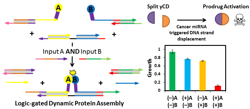 In hindsight, the idea seems simple: link proteins with DNA and take advantage of both. However, at the time, using strand displacement to assemble proteins was an out-of-the-box idea that had never been explored before. This idea has spawned a wealth of new projects within our lab, and we continue to apply this technology and, more generally, this line of thinking to other synthetic biology problems. Often times the best ideas come from simple views of problems from a creative angle.
