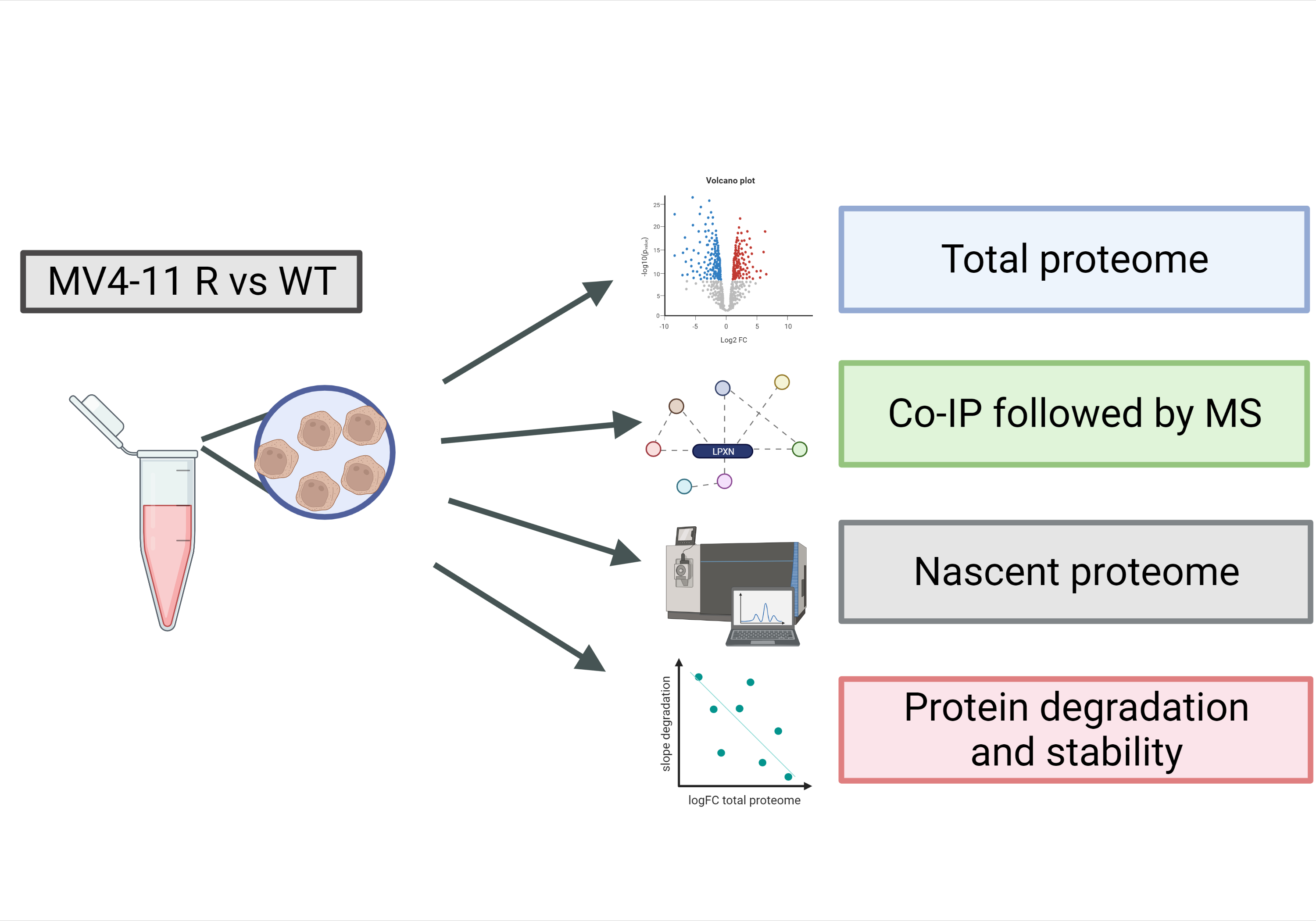 Figure 1: Proteomics workflow scheme for characterization of MV4-11 R vs WT cells.