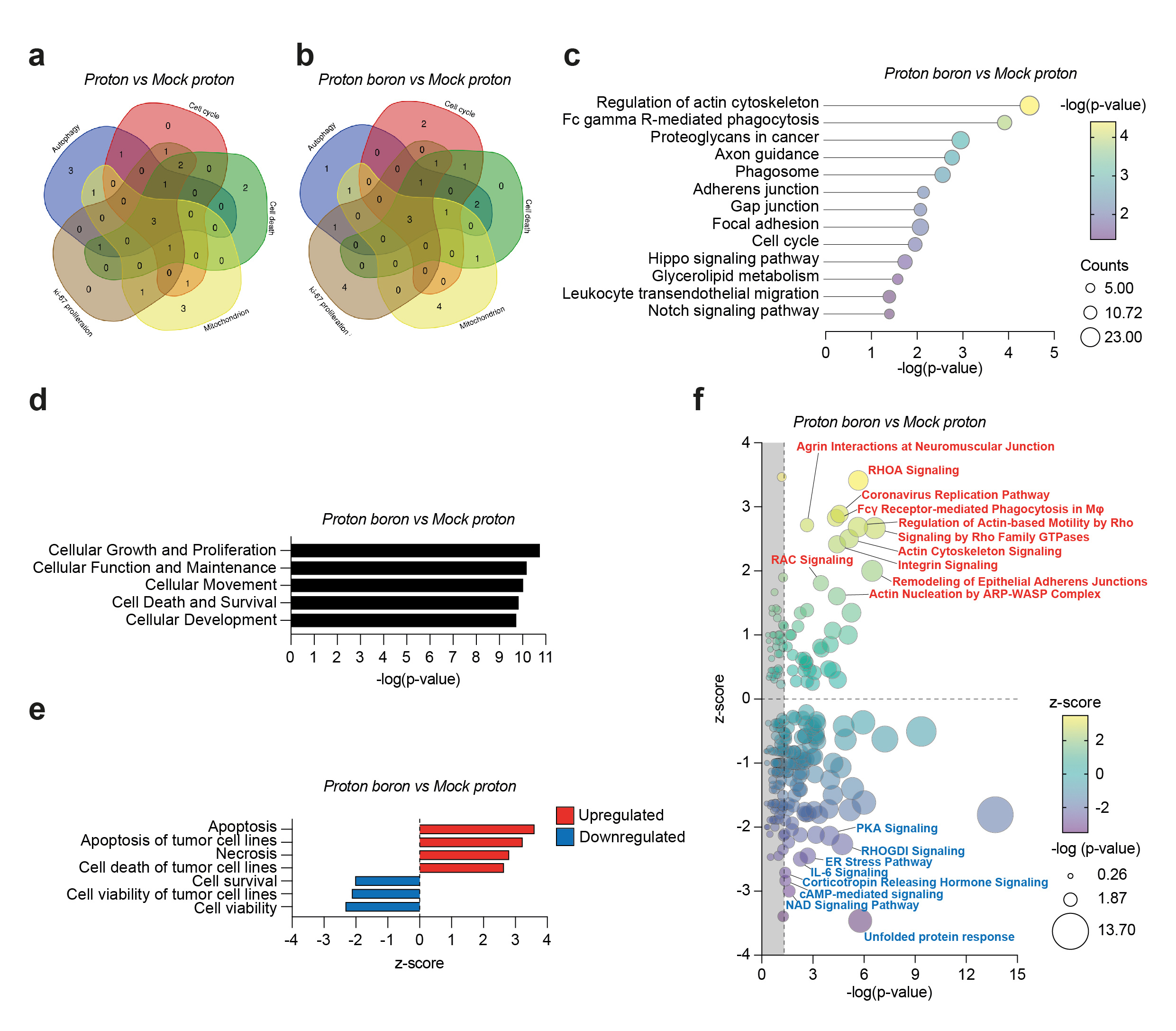 In conclusion, we showed the effect of PBCT in an in vivo experimental model of GBM, highlighting potential exploitable targets to be targeted in combination to PBCT. The observation of the effects of sub-therapeutic radiation regiments using protons, characterized by limited RBE, in combination with a boron-releasing molecule, showed the molecular network of interaction that induce cell death in tumor cells. Our study supports PBCT approach for GBM and opens the opportunity to study selective deliver of boron-releasing molecules in order to increase cell-specific toxicity and reducing off-target effects of radiotherapy.
