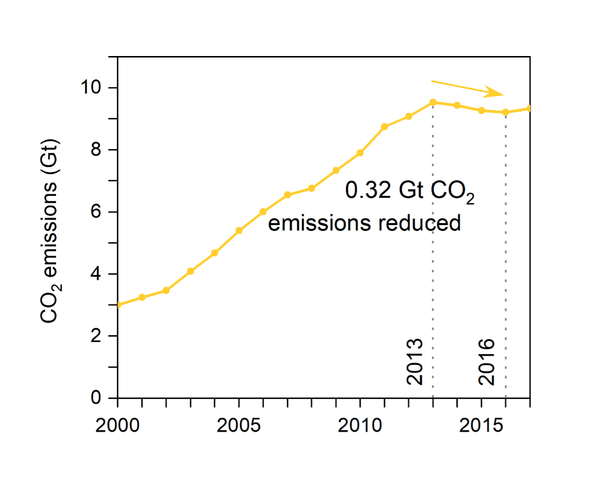 China has announced its goal of reaching carbon neutrality before 2060. This appears to be a challenging goal, as China is still on its way toward reaching peak carbon emissions in approximately 2030. China’s economic development has had a strong export orientation and concentrated on the manufacturing and construction industries, leading to a continuous increase in carbon emissions in the 2000-2013 period. In 2012-2013, China’s government realized the need for structural change, and the country gradually entered a new development phase called the “new normal”. With this change, China's carbon emissions declined from 2013 to 2016.