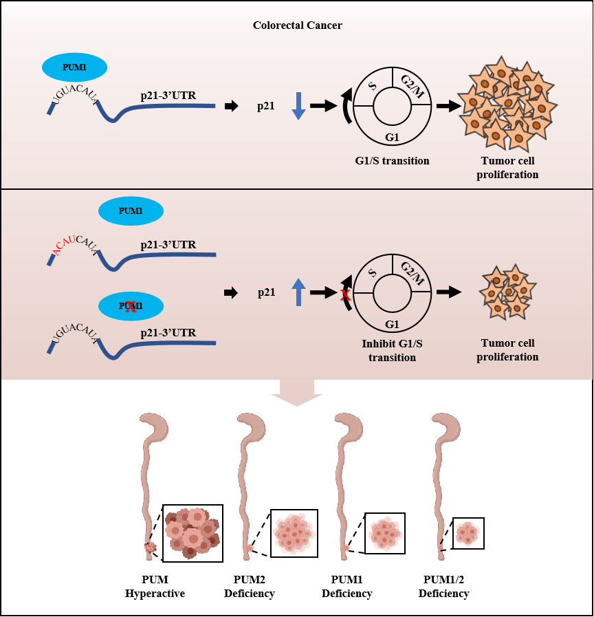 The pathogenesis of colorectal cancer is closely related to chromosome instability and gene regulation. However, much less is known about post-transcriptional regulation of gene expression. To overcome this issue, we have been studying a canonical mechanism of post-transcriptional regulation mediated by the Pumilio proteins.