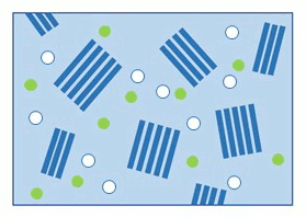 It turns out that the same concept can be applied to polymer electron microscopy. When imaging soft materials such as polymers, electron beam damage limits the resolution. One theory for the damage mechanism is that when the electron beam interacts with the polymer, it creates free radicals (white circles below), which then diffuse around and cause further damage to the material. In our work, we show that the addition of antioxidants (green circles) into a polymer specimen can neutralize these free radicals, thus minimizing beam damage and improving resolution.