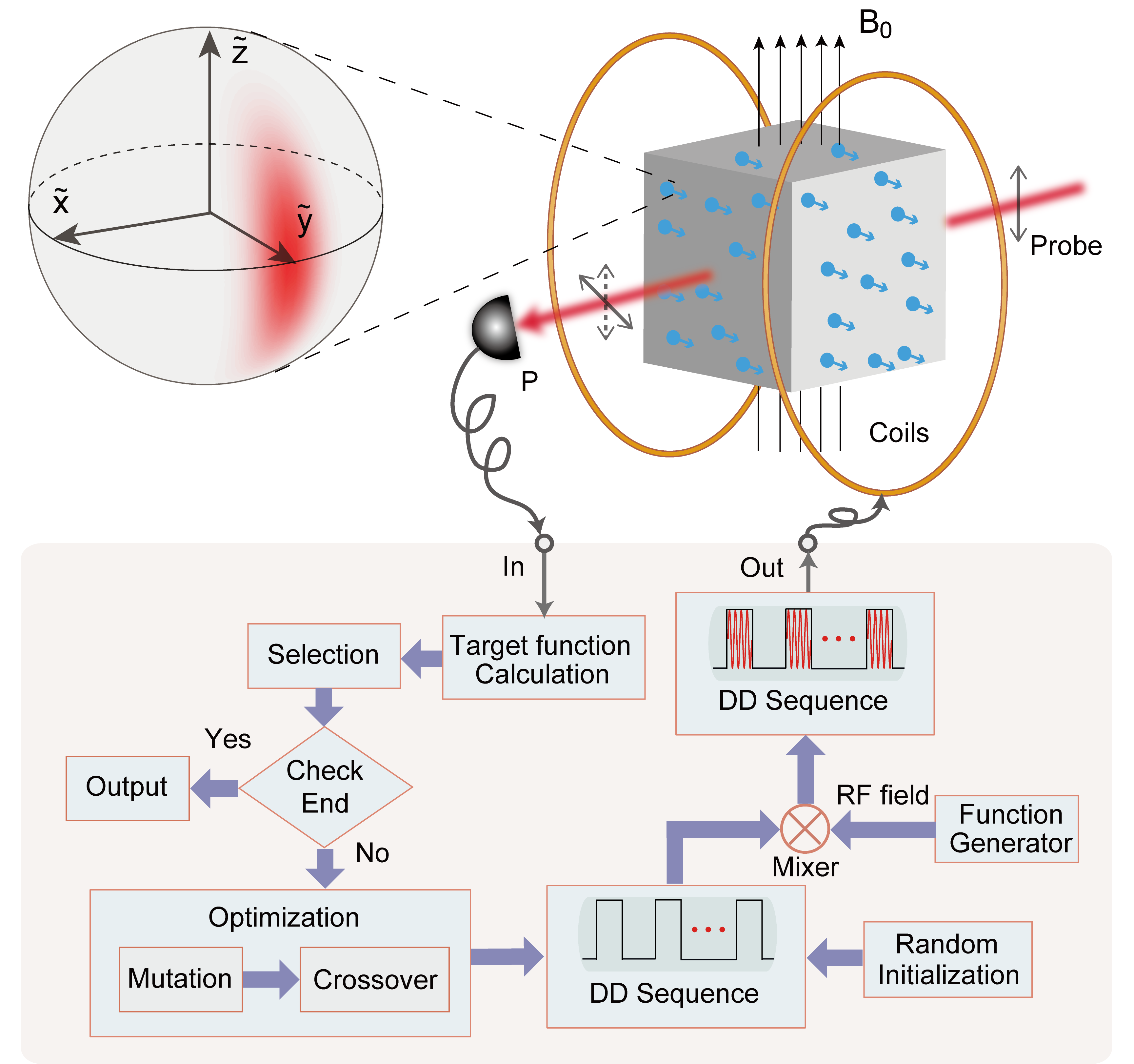 Building on our prior success in using spin locking and dynamic decoupling (DD) techniques to suppress the NLZ effect for coherent spin states (CSS), we extended these ideas to the more complex task of locking SSS. Compared to CSS, SSS involve more coherence terms in the density matrix that require careful handling. To meet this challenge, we turned to machine learning to design optimized rotation pulse sequences for the DD protocol. This approach proved remarkably successful: with the machine-learning-assisted DD sequence, the SSS maintained a fidelity as high as 99.99% in the Earth’s magnetic field. This result opens up new possibilities for leveraging spin squeezing in practical Earth-field magnetometry, potentially transforming the limitations imposed by NLZ effects into a quantum advantage.
