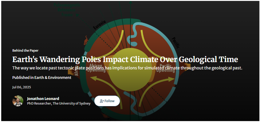Did you know that the way we reconstruct ancient plate movements can dramatically change simulated climates through geological time? @Jonathon Leonard explored how using different reference frames in tectonic models - one based on the mantle and another on paleomagnetic data, can lead to climate differences of up to 20°C. Published in Communications Earth & Environment, their team developed fast, flexible workflows to explore deep-time climates, paving the way for new insights into ancient environments, ecosystems, and resource exploration. Discover more in this Behind the Paper post.