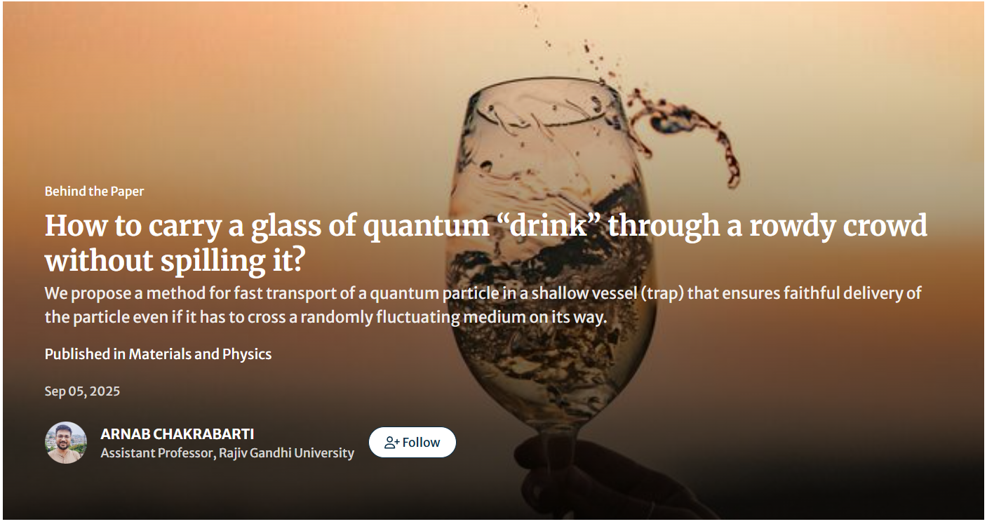 @ARNAB CHAKRABARTI and his team explore a fascinating challenge in quantum control: how to transport quantum particles safely and swiftly, like carrying a brimming glass through a lively crowd without spilling a drop. Inspired by Charlie Chaplin’s moves in Modern Times, they found that accelerating the trap within the system’s “memory time” helps prevent energy loss and keeps the transport highly precise.