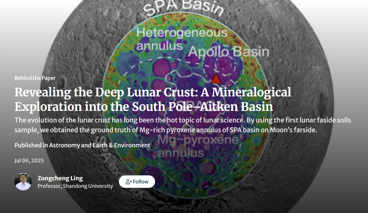 @Zongcheng Ling and his team share insights from Chang’e-6 mission, which returnedthe first lunar farside soil samples to Earth. Using laser confocal Raman spectroscopy, they identified mineral signatures that confirm the Mg-rich pyroxene annulus of the South Pole–Aitken (SPA) basin, offering the first direct evidence of the deep lunar crust’s composition.