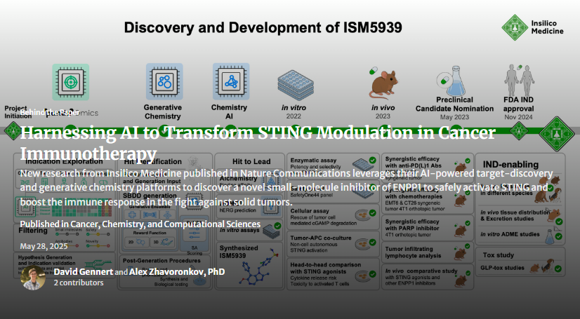 How do you safely activate one of the immune system’s most powerful cancer-fighting pathways without triggering dangerous side effects? In their Behind the Paper post, @David Gennert and @Alex Zhavoronkov, PhD and team unveil how they identified a specific immune checkpoint across solid tumours and designed a novel, AI-generated inhibitor that reawakens anti-tumour immunity from within. This inhibitor works locally, avoids systemic toxicity, and shows promise in tough-to-treat cancers like triple-negative breast and colorectal cancer. Published in Nature Communications, this new approach could finally overcome the safety hurdles that have held some therapies back and marks a major milestone in AI-driven drug discovery. What normally takes years, the team achieved in months. Explore the full story to find out how.