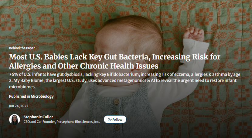 Why are so many children developing chronic illnesses so young? Could the answer lie in their guts? That’s the key question behind the My Baby Biome study by @Stephanie Culler. This research, published in Communications Biology , explains a ground-breaking investigation into the infant microbiome and its link to long-term health. This research reveals startling gaps in babies’ gut bacteria, with 9 in 10 infants missing a microbe essential for immune development. Discover how how gut bacteria impact the risk of developing allergies and asthma, and how this research could reshape the future of paediatric health by reading this Behind the Paper post.