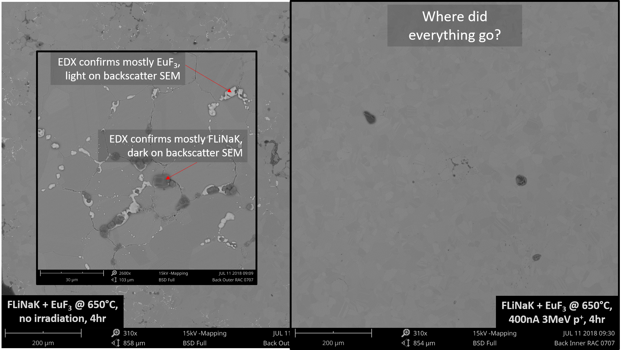 That's why we believe our results are so important - we have shown that radiation slows corrosion of Ni-based alloys in molten fluoride salts at 650C. It may sound like a pretty specific recipe, but it is precisely the set of conditions and materials for near-term planned molten salt nuclear reactors