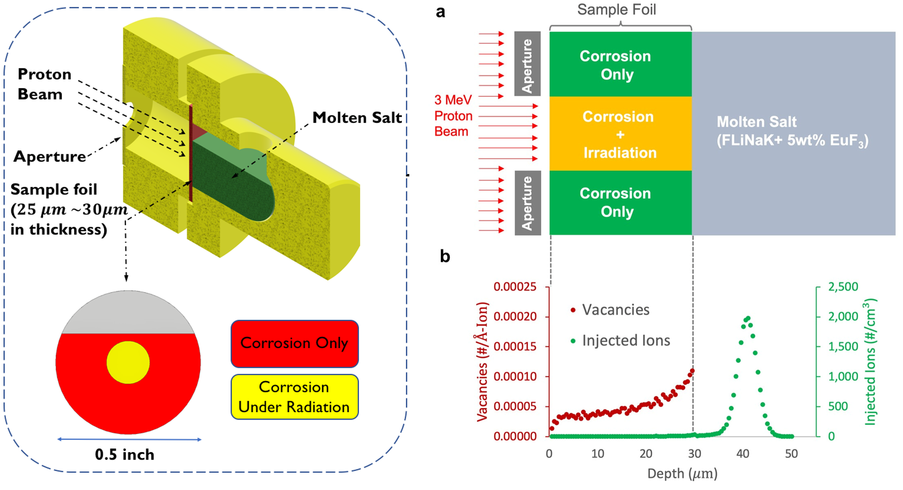 This facility, inspired by work from Los Alamos National Laboratory and the University of Michigan, would involve passing protons through a thin foil sample of metal simultaneously exposed to molten salt. The protons would pass through the foil, imparting radiation damage along the way, and end up in the salt to best replicate the type of neutron damage found in nuclear reactors. Easier said than done.