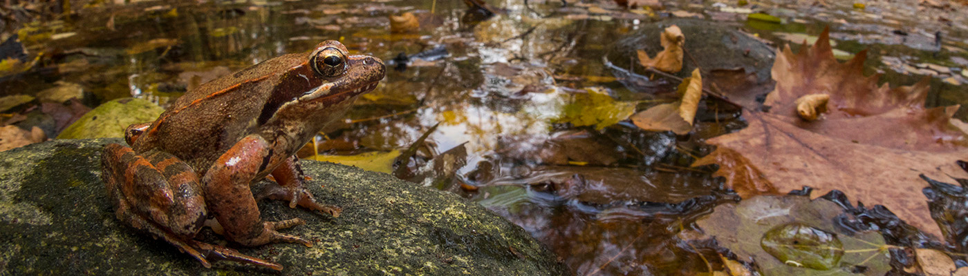 The Italian agile frog, Rana latastei, breeds in forest ponds at low altitude