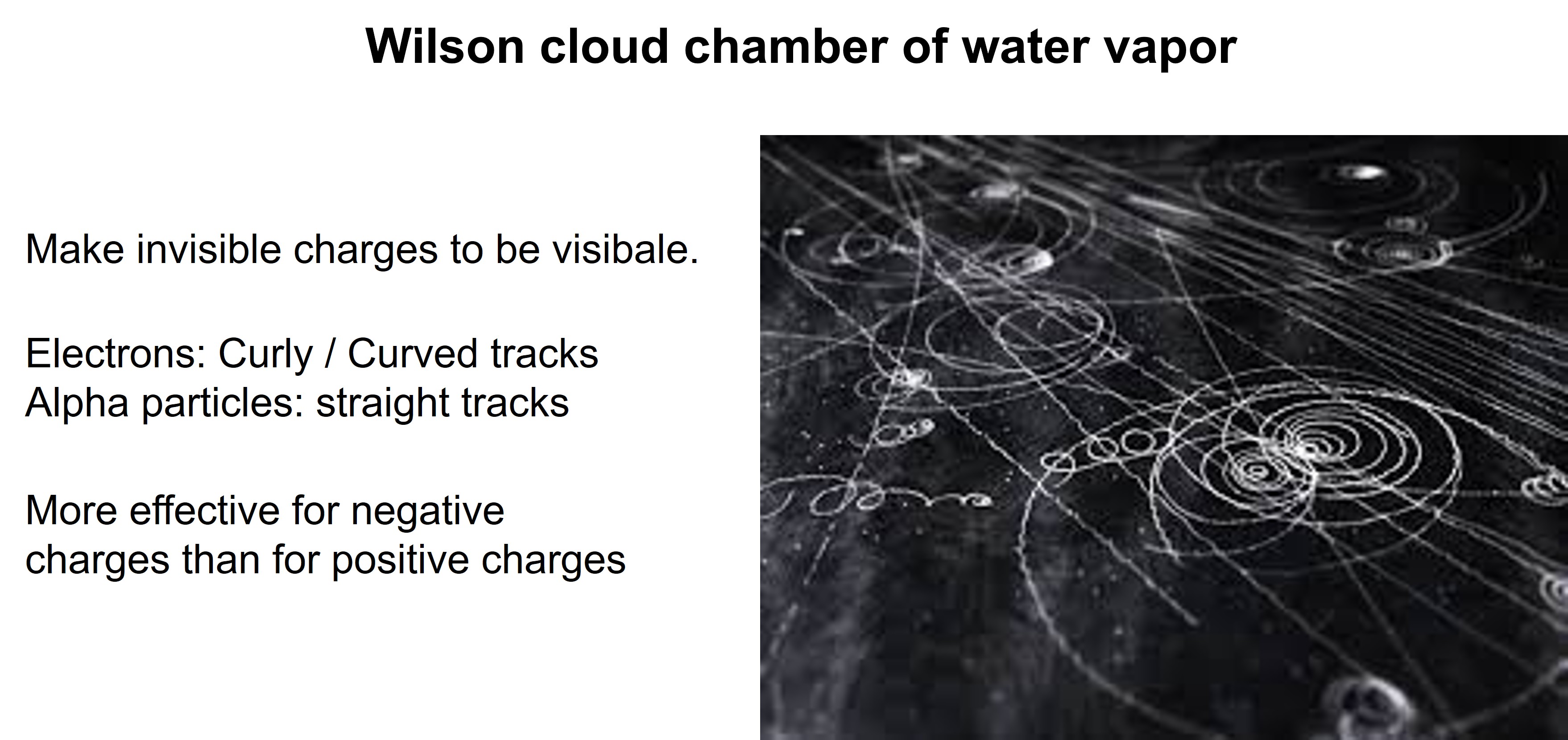 The Wilson cloud chamber can display the invisible tracks of negatively charged electrons and positively charged alpha particles released from radioactive materials (Figure 3). The electrons showed curly or curved tracks and alpha-particles showed straight tracks.