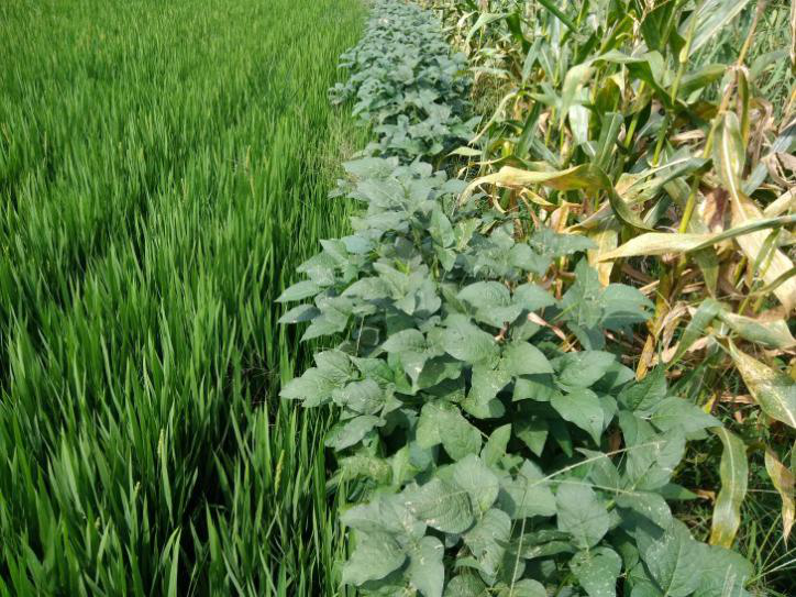 Soybeans and maize were interplanted around the rice fields on Chongming Eco-island of China. (Photo: Nian-Feng Wan)