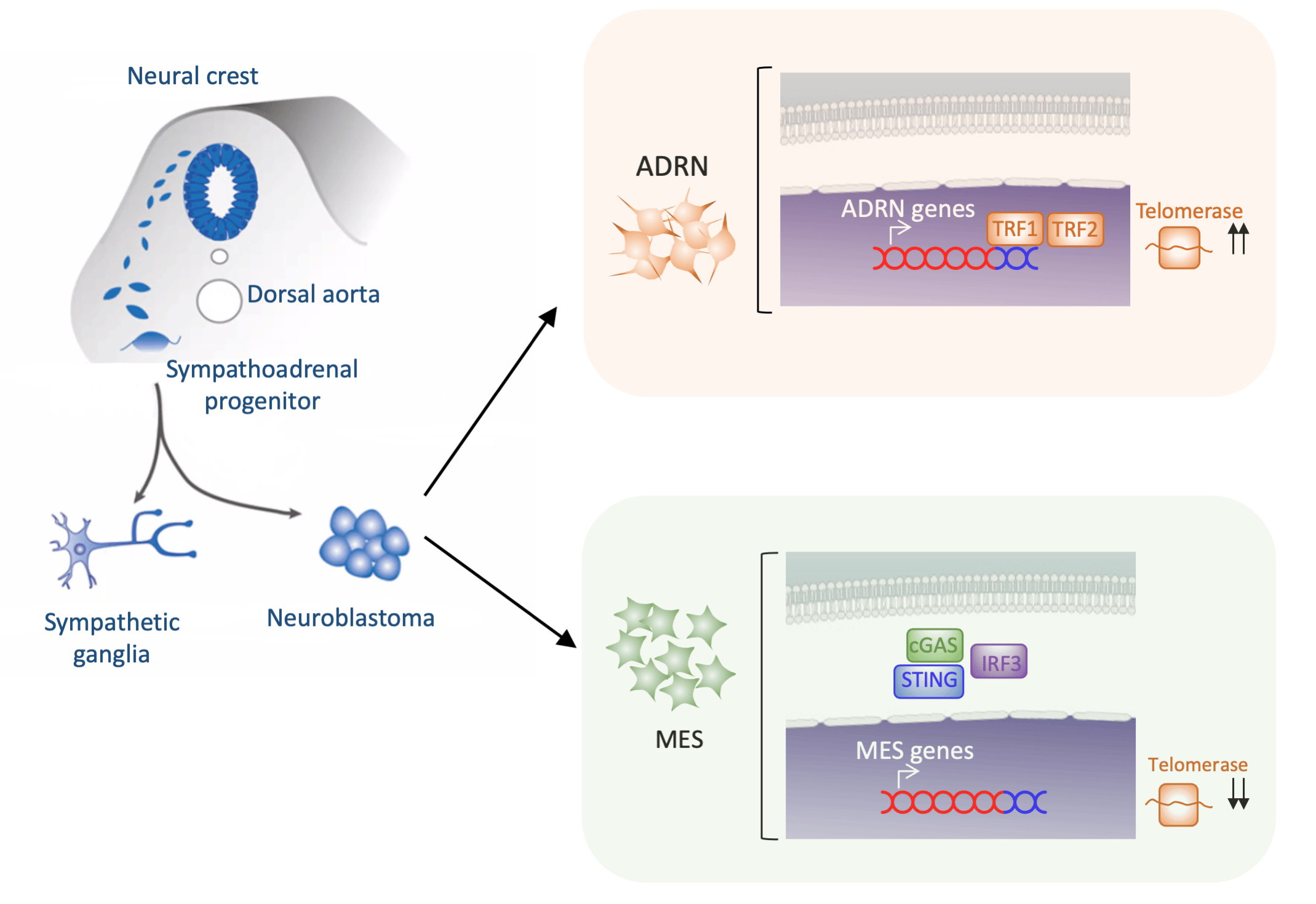 Figure. Telomeres and neuroblastoma ADRN/MES differentiation