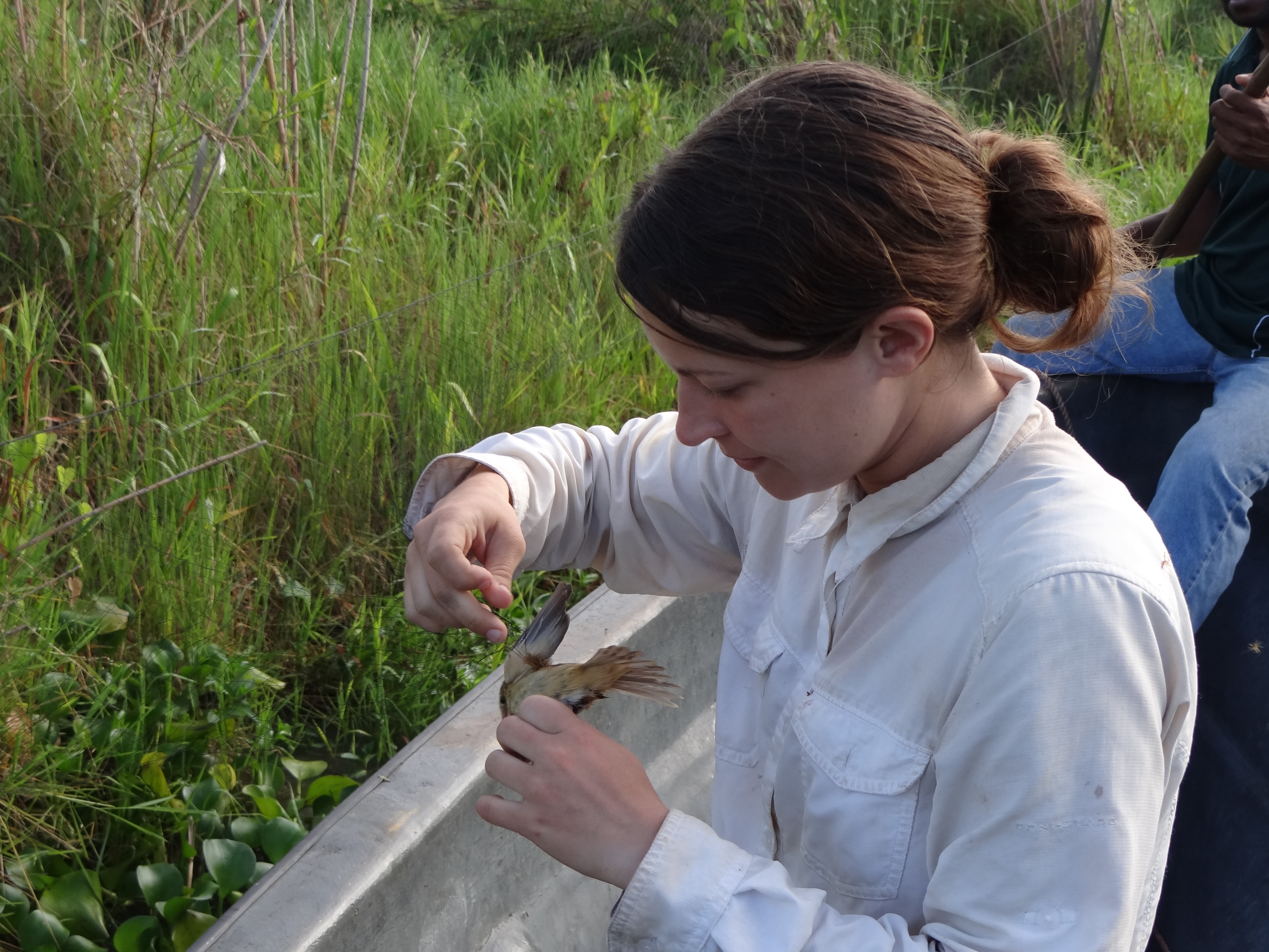 The author removing a bird from a mist net near Owa in Western Province, Papua New Guinea. Photo by Michael Sorenson.