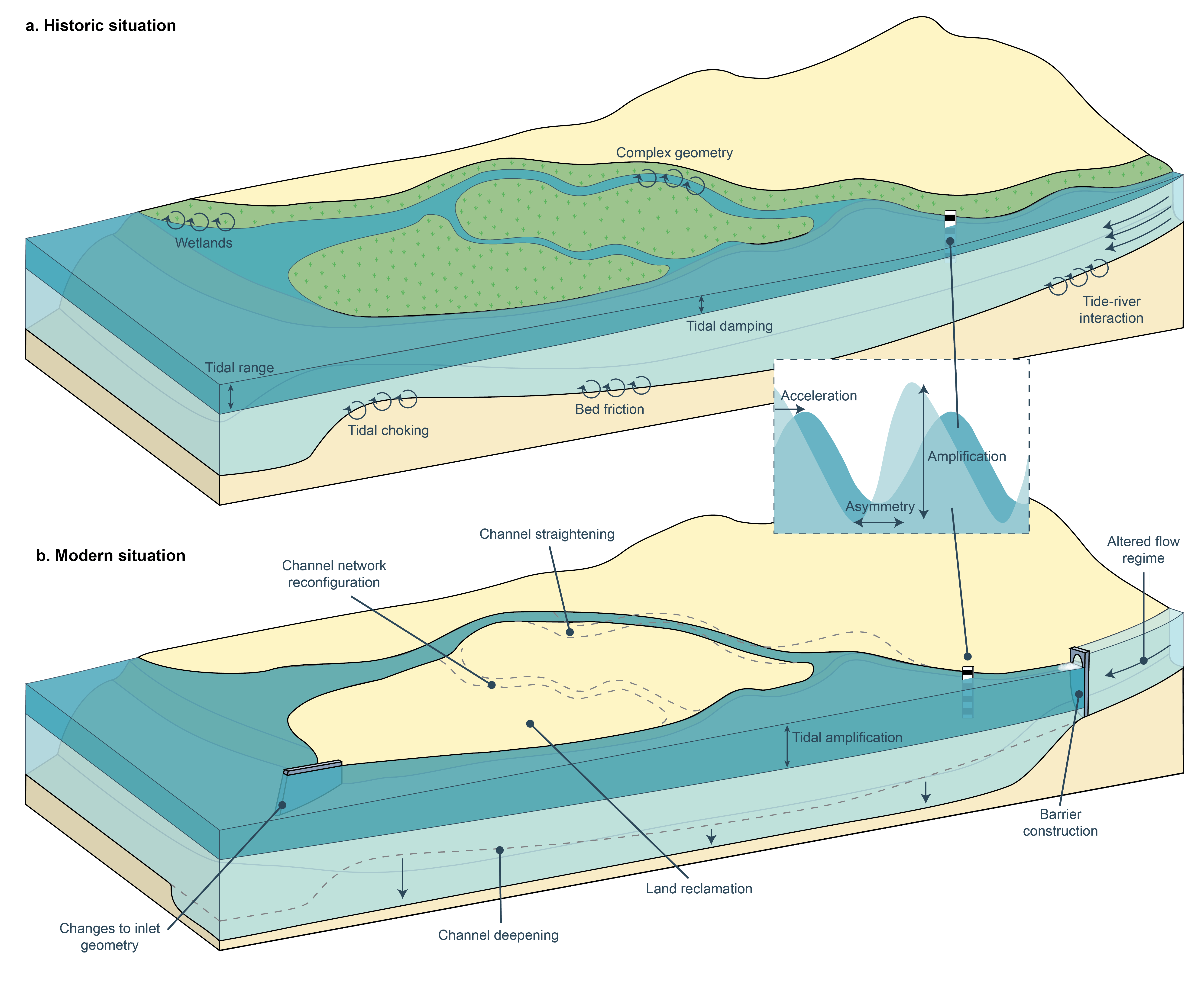 If parts of these systems can be restored, for example by making channels shallower again or reintroducing intertidal areas, there is potential to dampen tidal amplification. That could even help reduce how strongly sea-level rise is felt further inland.