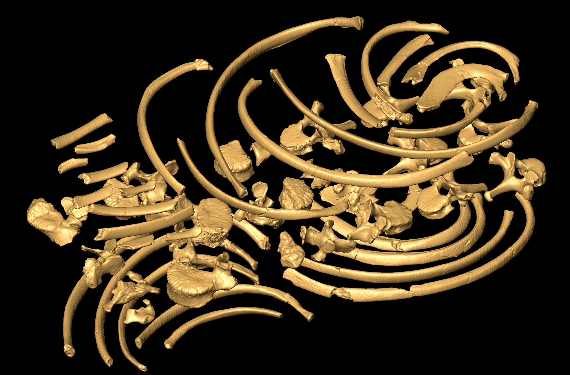 A big difficulty was to get comparative 3D data, because the rib cage is not a very frequently studied anatomical element. In addition, the rib cage is a metameric structure: it consists of many different bones that look pretty similar. Thus, we needed to analyse at 36 different bones (24 ribs, 12 vertebrae, sternum excluded) in adults and juveniles and the analysis of each of these bones required samples of just this bone that were large enough to cover at least the minimally necessary features of variation.