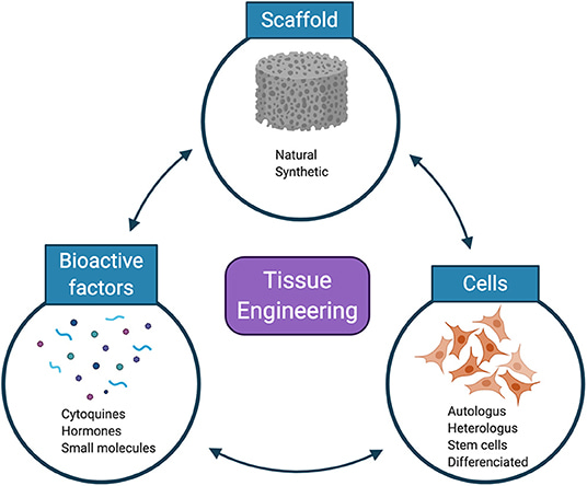 Biomaterials in the form of hydrogels, carriers, and scaffolds play a significant role to anchor cells and generate functional tissues [Nguyen 2019]. Material compositions typically include polyglycolic acid (PGA), poly-l-lactic acid (PLA), poly-DL-glycolate (PLGA), polyvinyl alcohol and their derivatives (Figure 3).