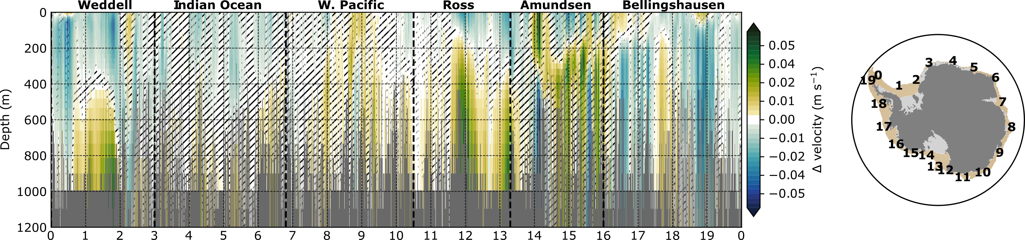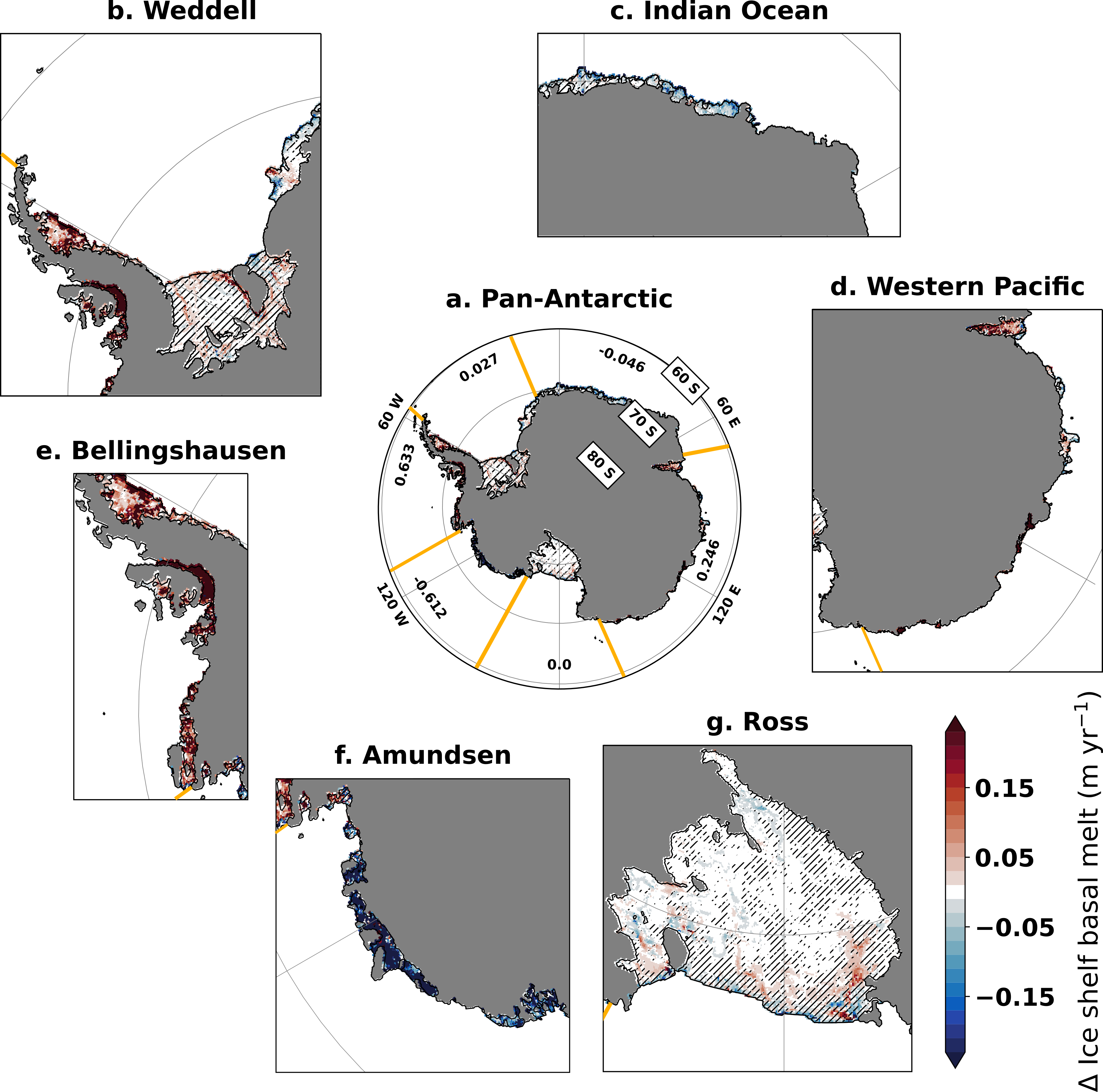 We show that positive phases of the SAM (characterized by an increased intensity and southward shift of the westerly wind belt) lead to increased advection of warm and saline waters (referred to as "upwelling") towards the ice shelves, and increasing subsurface ocean temperature and salinity close to the base of ice shelves, while the opposite occurs for negative phases. A one-standard-deviation increase of the SAM leads to a net basal mass loss of 40 Gt yr−1 (i.e., about half the Antarctic ice-sheet mass change over the period 1992–2011) with strong regional contrasts around Antarctica. We observe increased ice-shelf basal melt in the Bellingshausen sector (a very sensitive region located on the western side of the Antarctic Peninsula) and the Western Pacific sector (harboring mainly small ice-shelf cavities that may be little resilient to climate variations) and the opposite response in the Amundsen sector (located between the Bellingshausen sector and the Ross ice shelf).