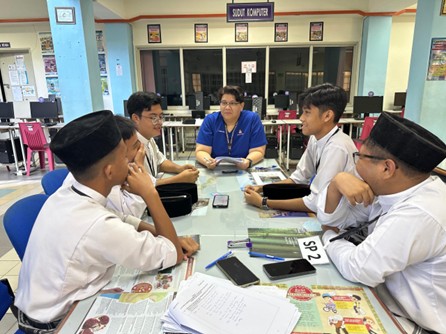 FGD Research Team (2023). From front left to right: Syahmirul and Melissa; From back left to right: Amirul and Mohd Hidir. The core research team conducting fieldwork at one of the MRSM campuses in Malaysia.