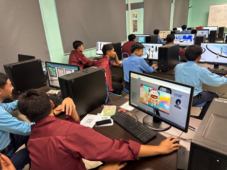 Adolescents interacting with the Meta-OHE platform in a school computer lab