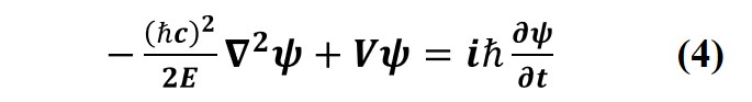Moreover, because the objects at different positions have different quantized states in a gravitation field and their masses in turn depends on their energy states, therefore, m, the mass of the object, is related to its total internal energy E by m = E/c2, c is the velocity of light. Hence, Schrödinger’s equation may be further modified as:
