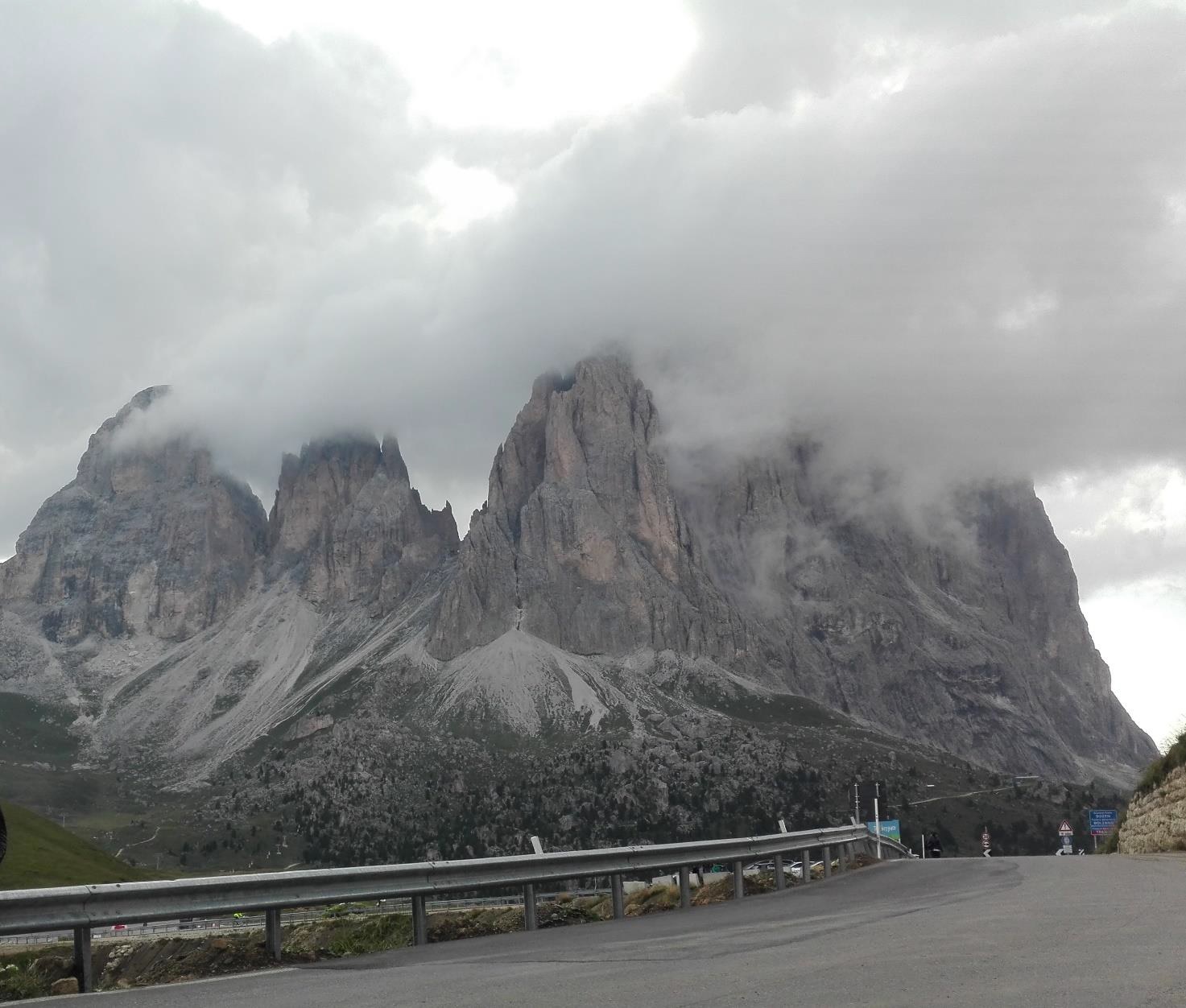 Fig.1: Orographic clouds on the Sella pass, third of seven Dolomites mountain passes in Italy.
