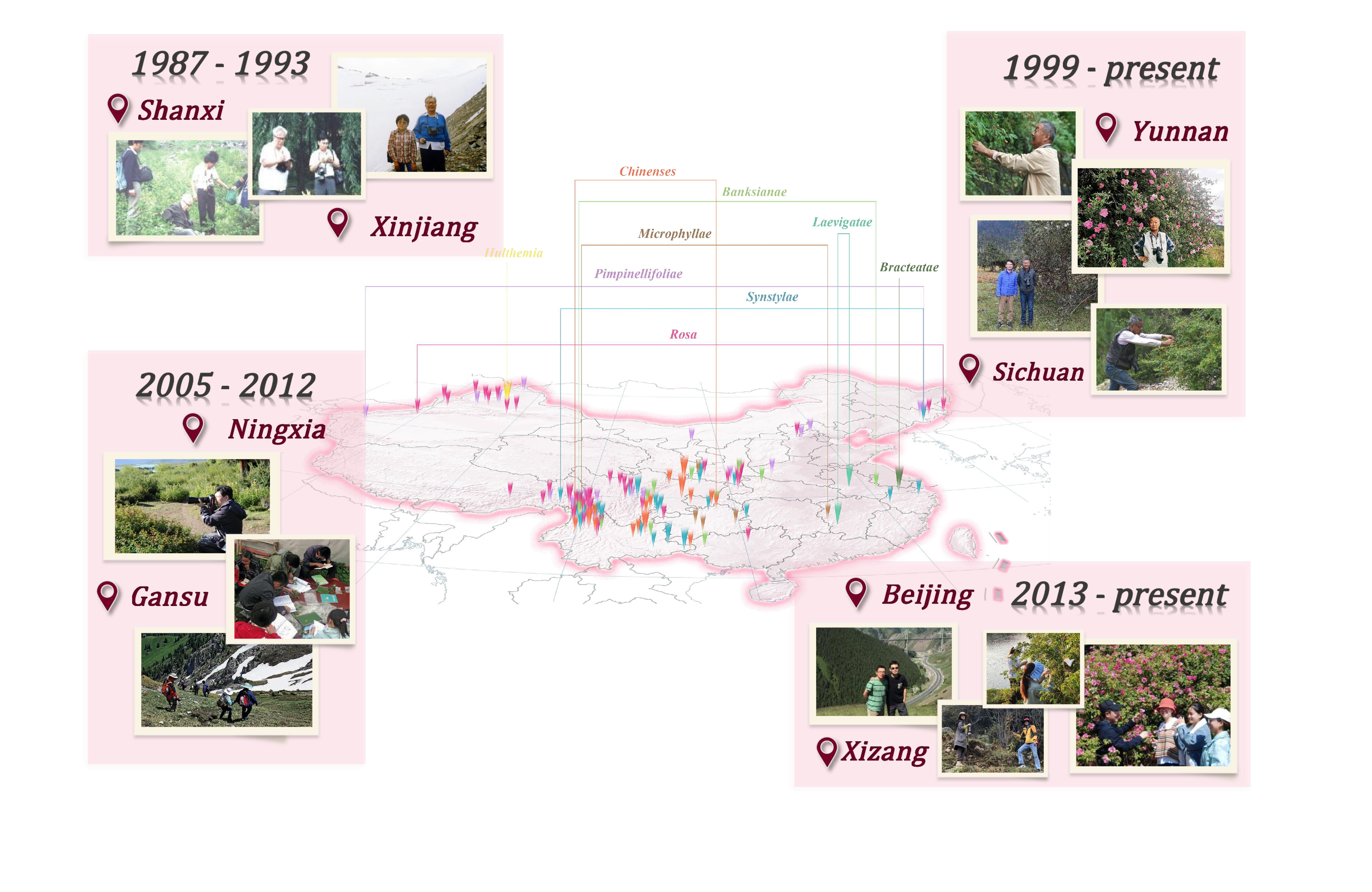 To address these challenges, our team systematically investigated the wild Rosa resources within the country for over decades, covering diverse habitats including deserts in the northwest, alpine meadows on the Xizang Plateau, and forests in the Qinling Mountains. As a result, we collected and preserved more than 200 wild Rosa accessions, representing all major taxonomic groups in China.