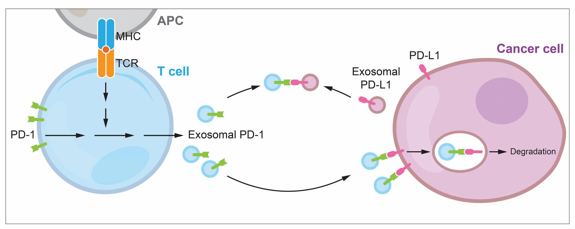 After validating the sub-localization of PD-1 on exosome surface by transmission electron microscopy and in-vitro binding of PD-L1 and exosomal PD-1, we were more confident of our hypothesis. Yet still, we needed to make sure the role of exosomal PD-1 and how it impacts on cancer immune surveillance during the confrontation between CTLs and cancer cells. By establishing in-vitro tumor-specific T cell-killing system and in-vivo orthotopic TNBC tumor models, we validated our hypothesis that exosomal PD-1 facilitates CTLs to attenuate the immune evasion of PD-L1-expressing TNBC cells via both occupying cell surface PD-L1 loci and neutralizing exosomal PD-L1 particles.