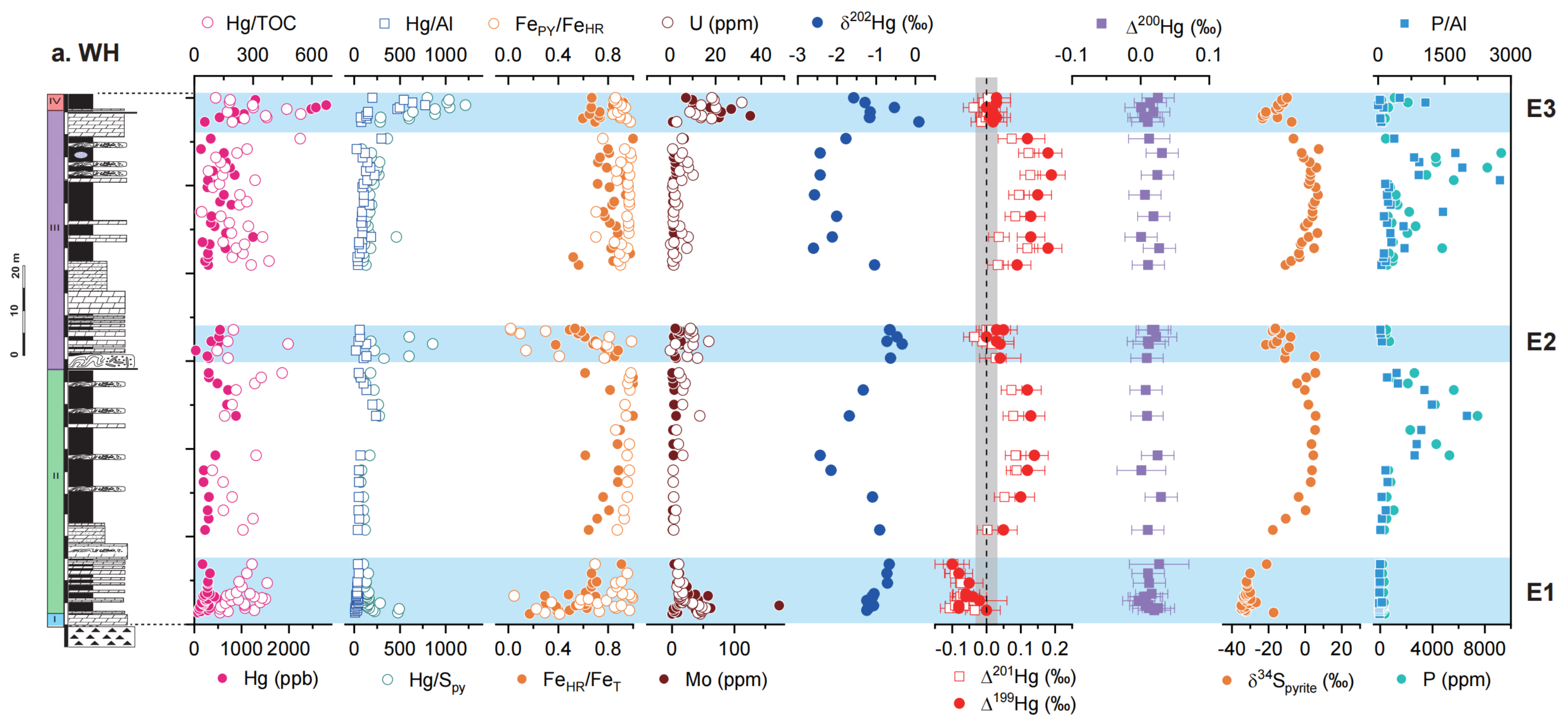 Zheng W., Gilleaudeau G. J., Algeo T. J., Zhao Y., Song Y., Zhang Y., Sahoo S. K., Anbar A. D., Carmichael S. K., Xie S., Liu C.-Q. and Chen J. (2023) Mercury isotope evidence for recurrent photic-zone euxinia triggered by enhanced terrestrial nutrient inputs during the Late Devonian mass extinction. Earth Planet. Sci. Lett. 613, 118175.