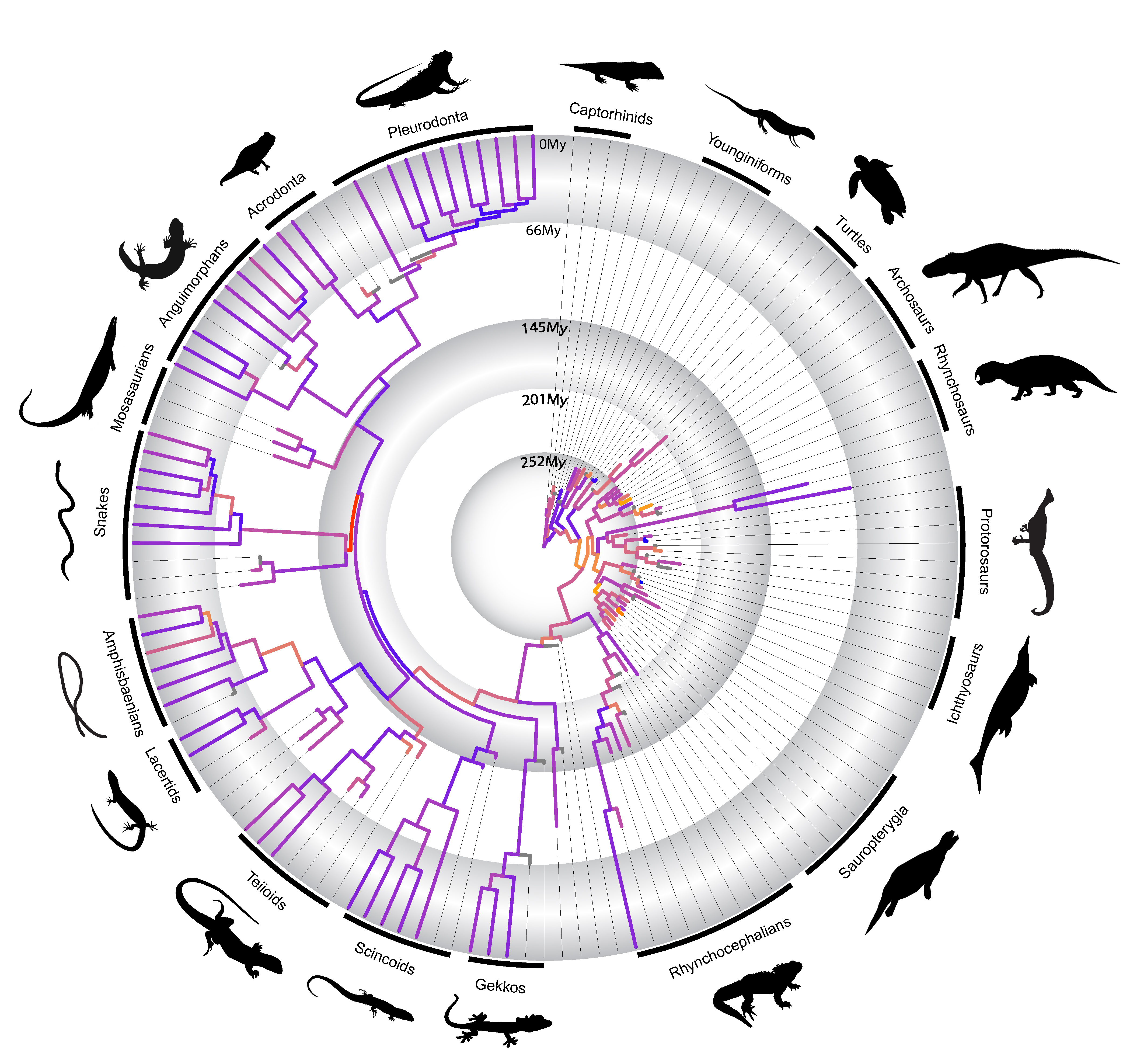 In a paper just published by myself and colleagues in Nature Communications last week, we utilized the methodological advances mentioned above to investigate some of those hypotheses first put forward by Simpson in the context of the evolution of the major lineages of reptiles during the last ~320 million years.